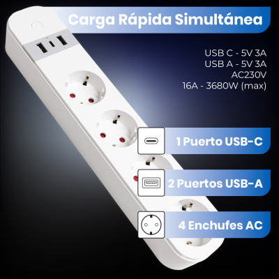 • Fortschrittliche USB-Anschlüsse und WiFi-Konnektivität: Enthält USB-A- und USB-C-Anschlüsse mit Schnellladefunktion und 2.4G WiFi 2.4G kompatibel mit IEEE 802.11 b/g/n, ermöglicht die Fernsteuerung und Automatisierung über die Smart Life oder Tuya App.