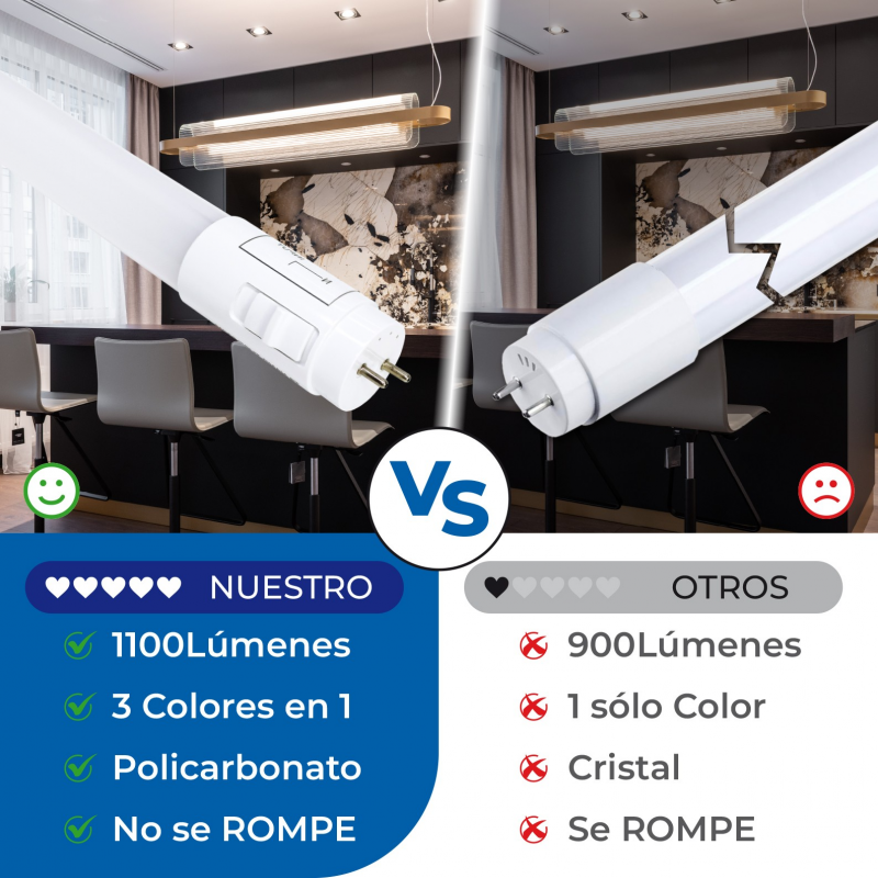 Diese 60cm 9W T8 LED-Röhre ist ideal zum Ersetzen alter Leuchtstoffröhren. Mit einer Länge von 60cm und einem Durchmesser von 2,6cm gehören zu ihren Hauptmerkmalen ihr opaler Diffusor, der eine gleichmäßige Lichtverteilung gewährleistet und Blendungen sowie Augenbeschwerden vermeidet, ihr 360º-Abstrahlwinkel und ihre 1100 Lumen. Ihr hoher Farbwiedergabeindex von +80 CRI sorgt für eine präzise Farbwiedergabe.