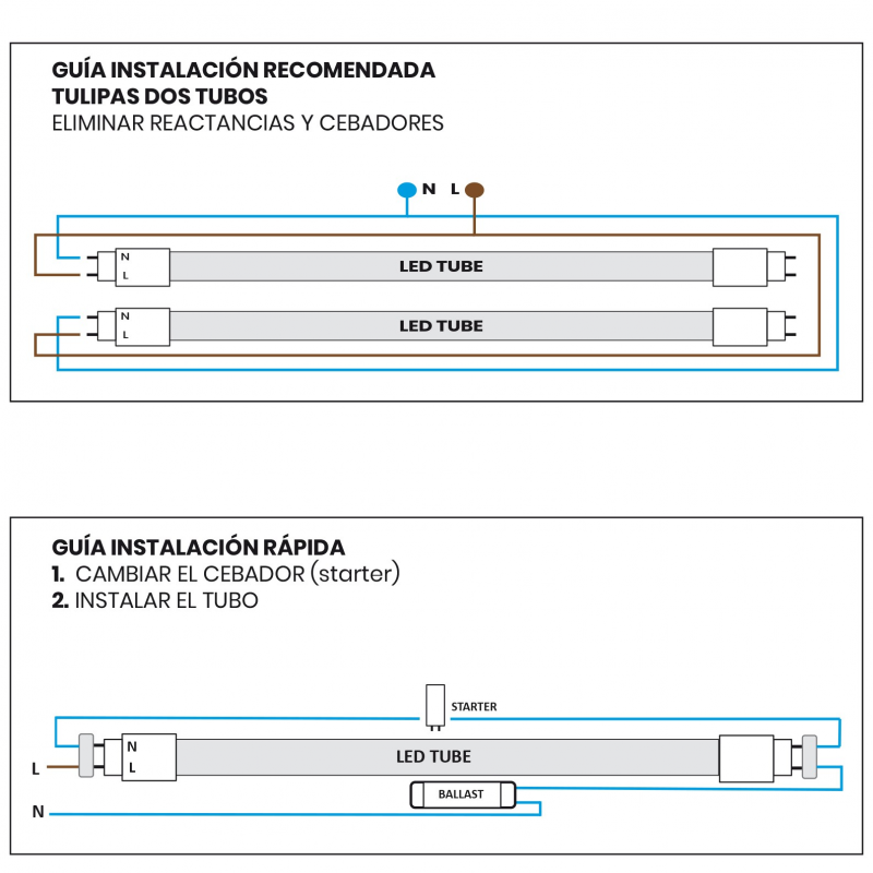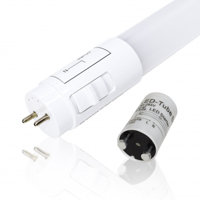 Die Röhre enthält jedoch einen LED-Starter, der die Installation unter Beibehaltung des Vorschaltgeräts ermöglicht, indem der herkömmliche Starter ersetzt wird.