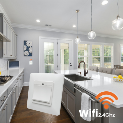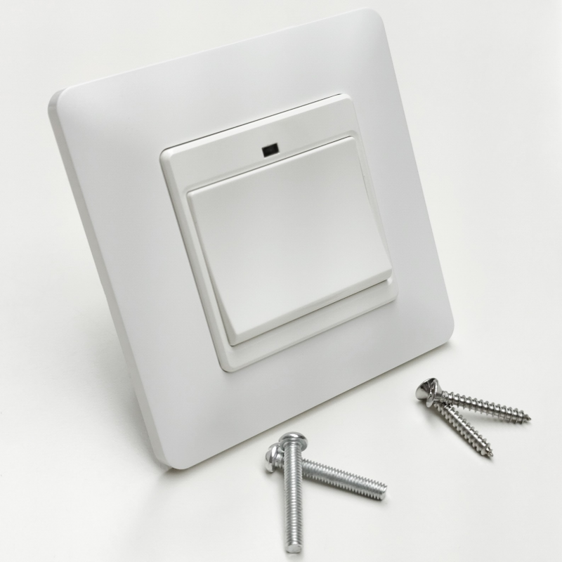 Dieser WiFi Smart Switch mit 1 Druckknopf ist in Weiß oder Schwarz erhältlich. Er hat genormte Abmessungen von 8,60 x 8,60 x 0,5 cm und wiegt 90 Gramm.