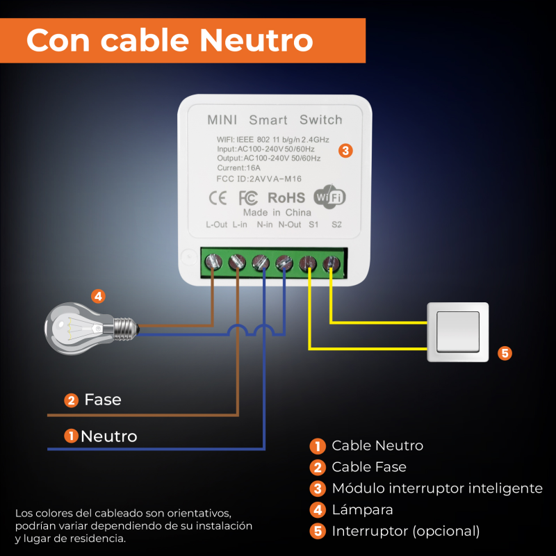 Das Hauptmerkmal dieses Modells ist, dass es über zwei Kanäle (S1 und S2) verfügt, an die ein oder zwei herkömmliche Wandschalter angeschlossen werden können.
