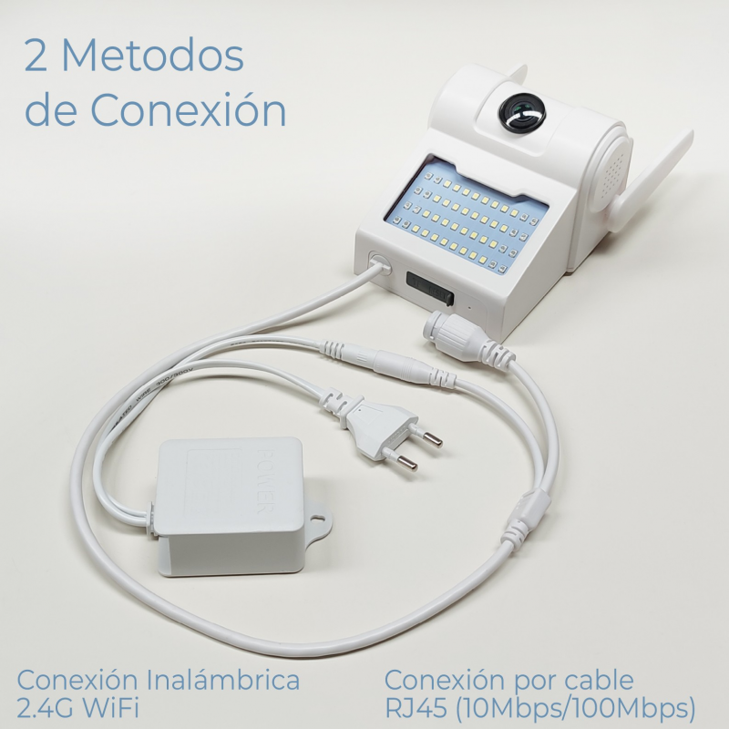 Die Konfiguration ist sehr einfach, Sie brauchen nur eine 2.4Ghz WiFi-Verbindung oder eine Verbindung über ein Ethernet-Kabel und müssen die SmartLife oder Tuya APP auf Ihrem mobilen Gerät installieren. In der APP müssen Sie die WiFi-Kamera aus der Geräteliste auswählen und den QR-Code scannen, der durch das Kameraobjektiv auf dem Bildschirm erscheint. In weniger als 5 Minuten ist Ihr smartes Gerät einsatzbereit.
