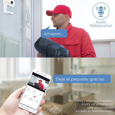 Sie verfügt über ein Einweg-/Zweiweg-Audiosystem. Sie bietet die Möglichkeit, über die Kamera zu sprechen oder einfach nur zuzuhören, ohne zu sprechen.