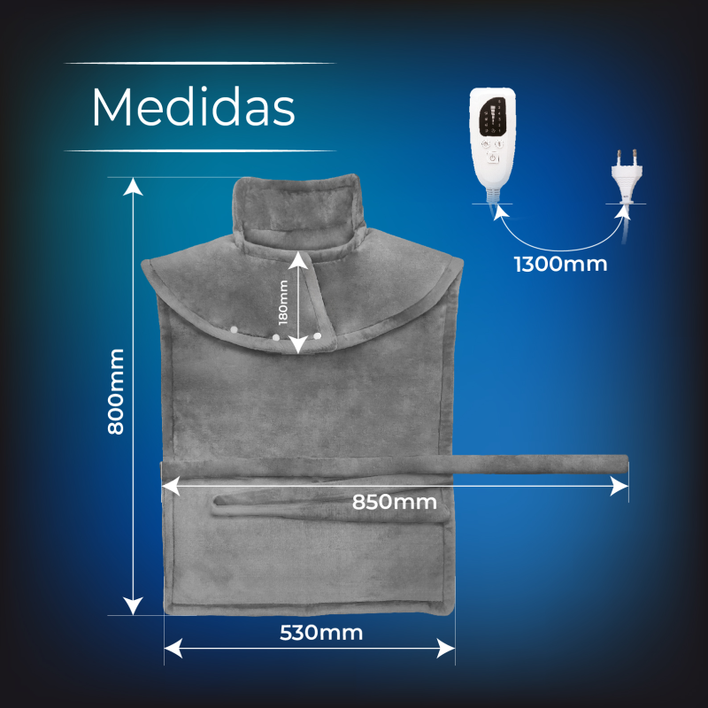 Für zusätzlichen Komfort und Sicherheit ist ein Timer mit automatischer Abschaltung integriert, programmierbar in Intervallen von 30, 45, 60 und 90 Minuten. Dies ermöglicht eine kontrollierte Nutzung beim Lesen, Fernsehen oder Ausruhen.