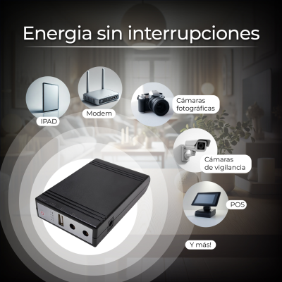 This incredible Mini UPS or Uninterruptible Power Supply (UPS) is designed to provide an emergency power source in the event of a power loss. Its versatility makes it compatible with a wide range of devices, including WiFi routers, modems, surveillance cameras and phones, ensuring that these electronics continue to operate uninterrupted during a power outage, thanks to the Mini UPS's built-in battery.