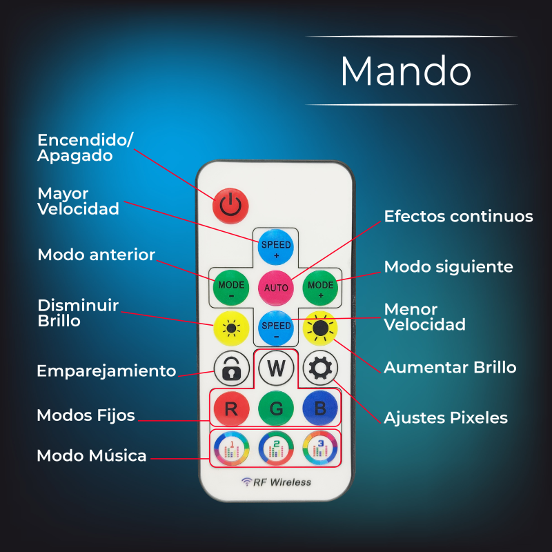 Control is quick and easy thanks to the 17-key remote control with batteries included, allowing you to change colors, adjust brightness and select multiple effects comfortably.