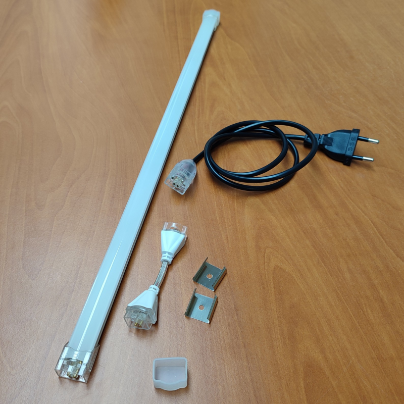Efficient 7-watt luminaire with a flat design and a high-quality aluminium housing. The extra flat housing is ideal for use as an under-cabinet or under-furniture luminaire. With 6500 kelvin, it provides a white light of 680 lumens Simple installation of the LED strip with connection cable. Secure fastening by means of two fixing screws covered by two covers. Due to its small dimensions it offers many possibilities of use. The flat, unobtrusive design with translucent cover makes it unobtrusive while working in the kitchen or workshop. The luminaire under kitchen, cupboard, corridor, etc. is very useful and allows you to interconnect more strips together, in conjunction with the extension kit. Dimensions: 510x20x15mm.