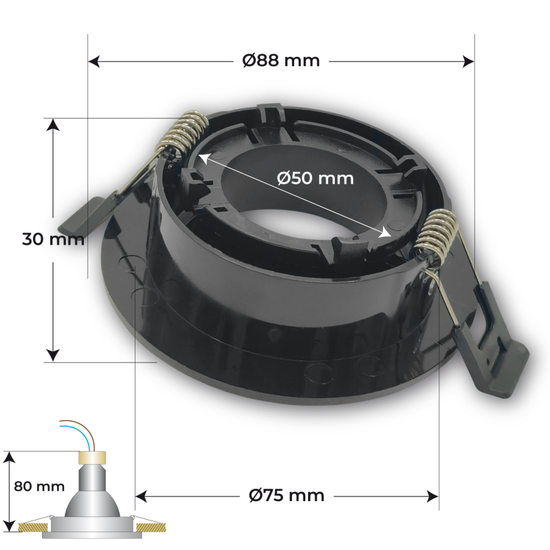 Aro empotrable redondo para el techo tipo ojo de buey, pensado para alojar bombilla GU10 O MR16.