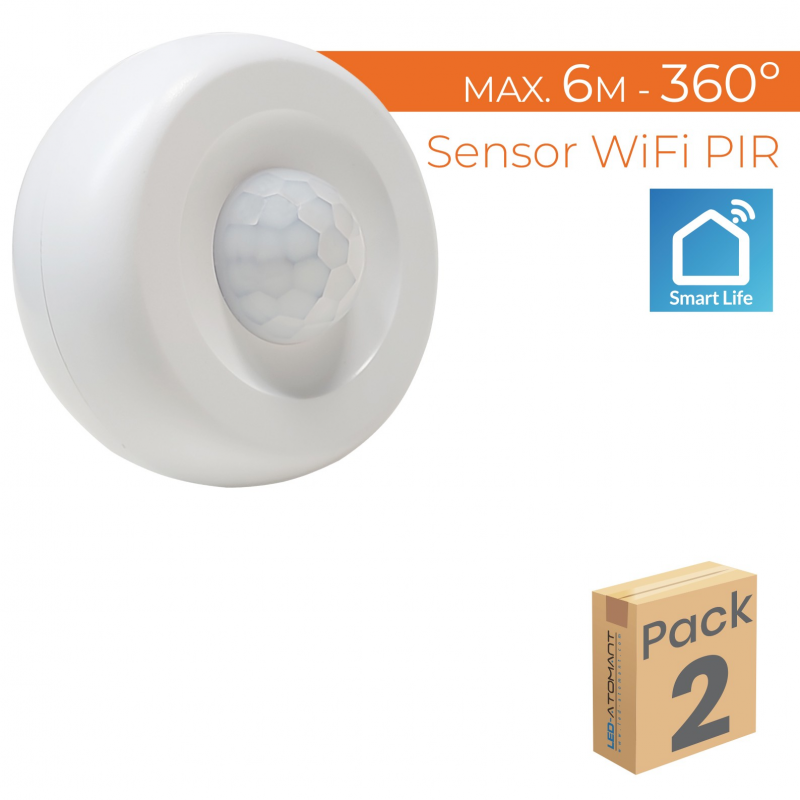 El Detector de movimiento inteligente WiFi con sensor PIR se puede integrar perfectamente en cualquier ubicación del hogar, oficina, almacén, etc. Este detector está diseñado para su montaje en techo o pared ofreciendo un ángulo de detección de 360º y una distancia máxima de 6 metros.