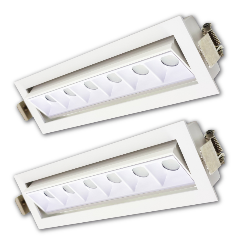 • Diseño Empotrable y Direccionable: Foco rectangular ajustable, ideal para diversas necesidades lumínicas.