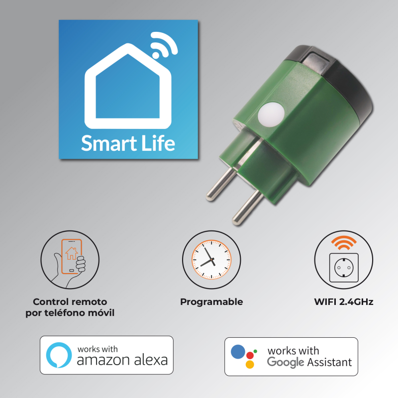 Con este dispositivo inteligente puede controlar los aparatos que se encuentran enchufados de forma remota desde cualquier lugar con una simple conexión a Internet. De esta forma, aunque no estemos en casa, podemos encender o apagar los electrodomésticos a través de la APP Smart Life o Tuya.