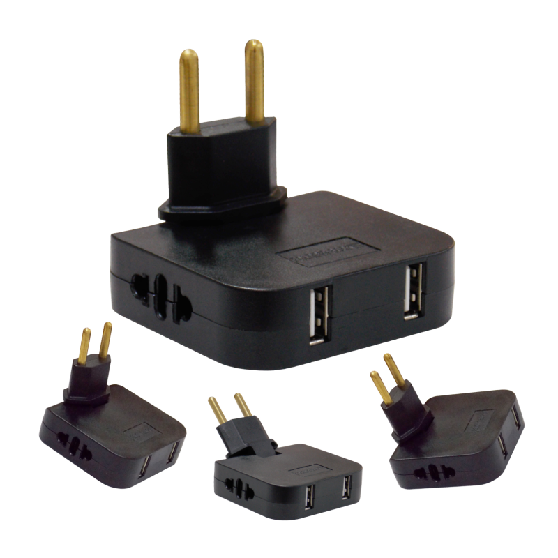 Este Enchufe 4 en 1 cuenta con 2 Adaptadores Americano (Tipo A) y Europeo (Tipo C y F). A su vez, presenta 2 puertos USB ideales para la carga de dispositivos electrónicos como móviles, tablets, etc.