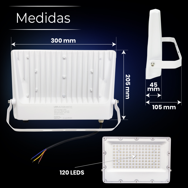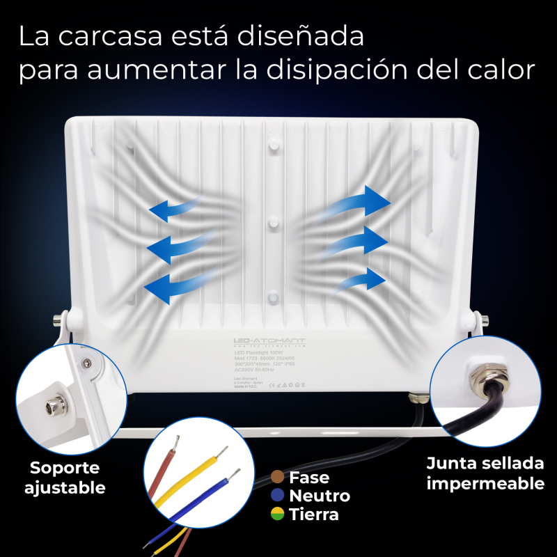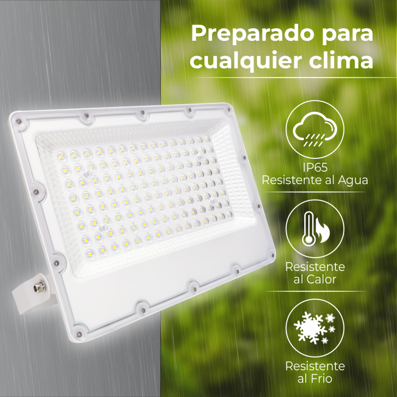 El Foco Proyector de 100W destaca por su diseño compacto y acabado minimalista pensado para substituir una luminaria halógena de hasta 500W, consiguiendo un ahorro energético de más del 90%.