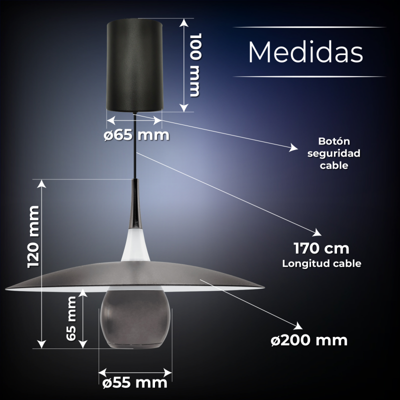 • Fácil Instalación: Diseñada para adaptarse a techos estándar, es práctica y rápida de instalar. Medidas de Ø200x120mm.