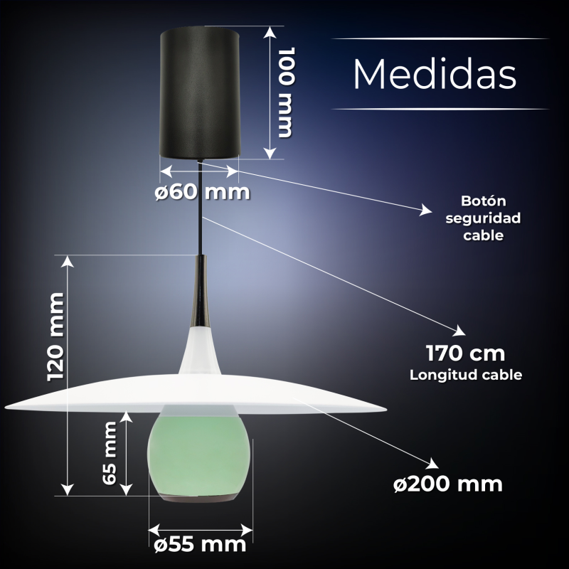 • Fácil Instalación: Diseñada para adaptarse a techos estándar, es práctica y rápida de instalar. Medidas de Ø200x120mm.