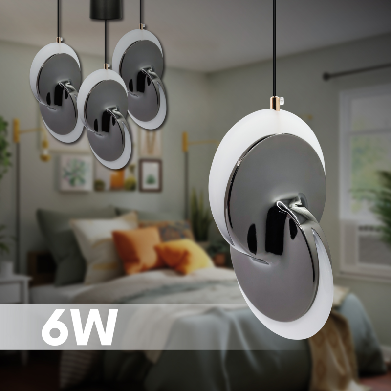 La Lámpara de Techo Moderna Discos de 6W combina diseño contemporáneo y eficiencia. Destaca su luminosidad de 320 lúmenes, un ángulo de apertura de 120º proporcionando una luz atractiva y de alta calidad con un índice de reproducción cromática de +90 CRI, indicativo de la calidad de luz que entrega.