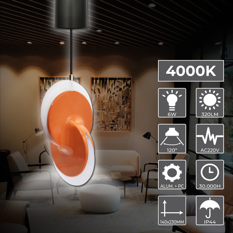 La Lámpara de Techo Moderna Discos de 6W combina diseño contemporáneo y eficiencia. Destaca su luminosidad de 320 lúmenes, un ángulo de apertura de 120º proporcionando una luz atractiva y de alta calidad con un índice de reproducción cromática de +90 CRI, indicativo de la calidad de luz que entrega.