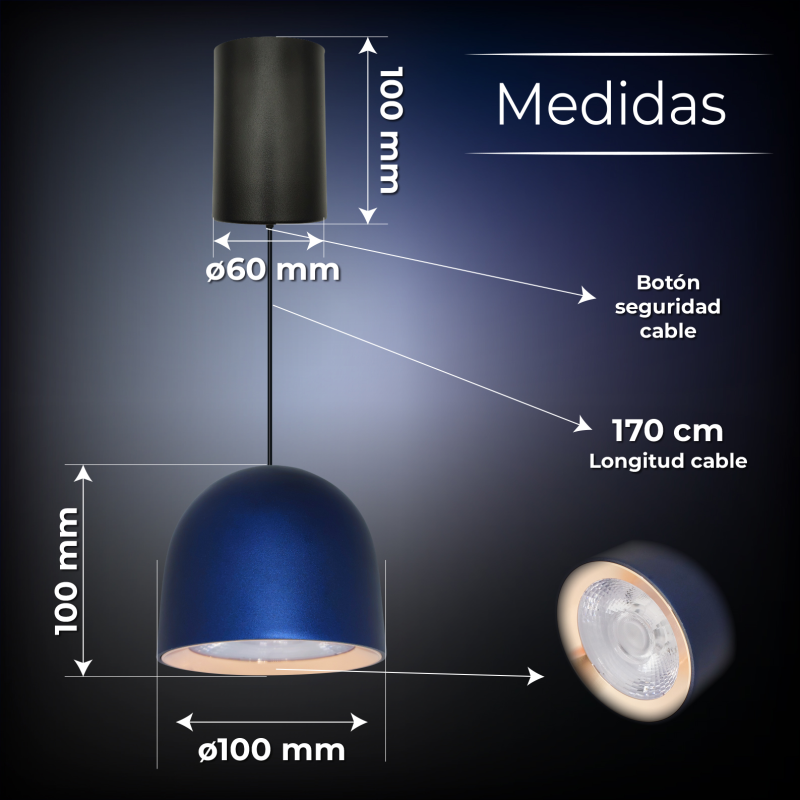 • Fácil Instalación: Diseñada para adaptarse a techos estándar, es práctica y rápida de instalar. Medidas de Ø90x145mm.