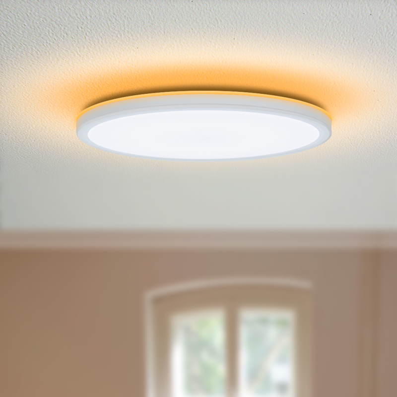 El plafón LED redondo 24 W de LED ATOMANT es una solución moderna y eficiente para iluminar cualquier estancia del hogar con el máximo confort. Su tecnología CCT (3000-6500K) permite seleccionar la temperatura de color ideal en cada momento, desde una luz cálida y relajante hasta una luz blanca fría perfecta para tareas o limpieza.