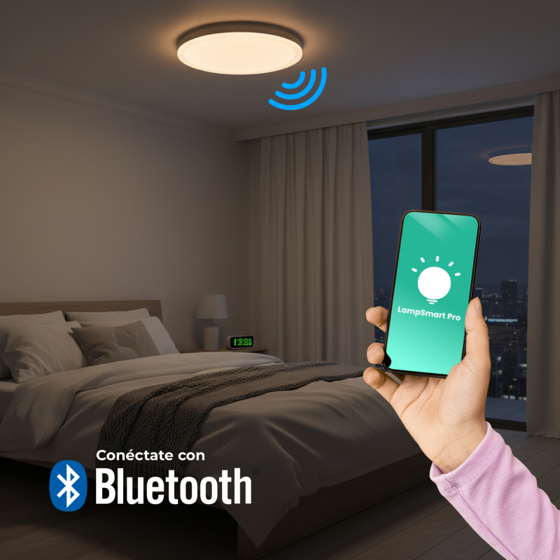 Gracias a su doble sistema de control, podrás manejarlo fácilmente mediante mando a distancia o aplicación móvil, ajustando brillo, tono de color e incluso temporizadores sin levantarte del sofá. Esta versatilidad lo convierte en la opción ideal para cocinas, salones, dormitorios o baños, adaptándose a cada necesidad de iluminación.