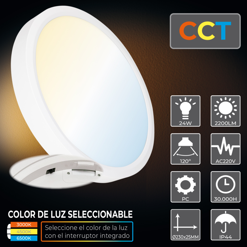 Plafón LED Circular Superficie 230mm 24W CCT