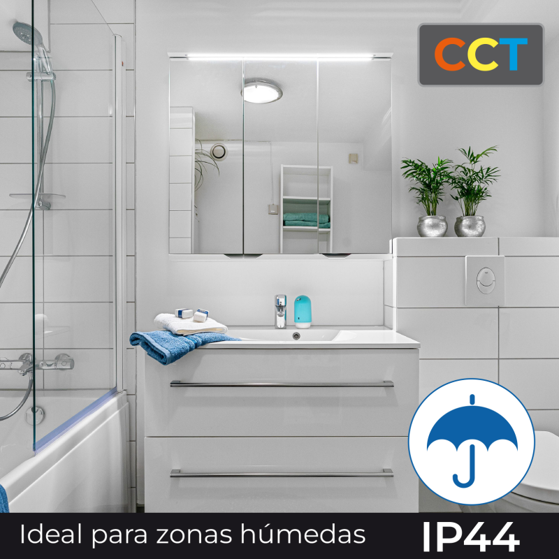 • Alta calidad: Policarbonato resistente y clasificación IP44, ideal para baños y cocinas.