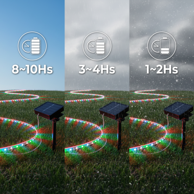 • [Encendido automático con sensor crepuscular] La tira LED solar exterior se enciende al anochecer y se apaga al amanecer gracias a su sensor crepuscular integrado, ofreciendo comodidad y ahorro de energía sin necesidad de interruptores ni temporizadores.
