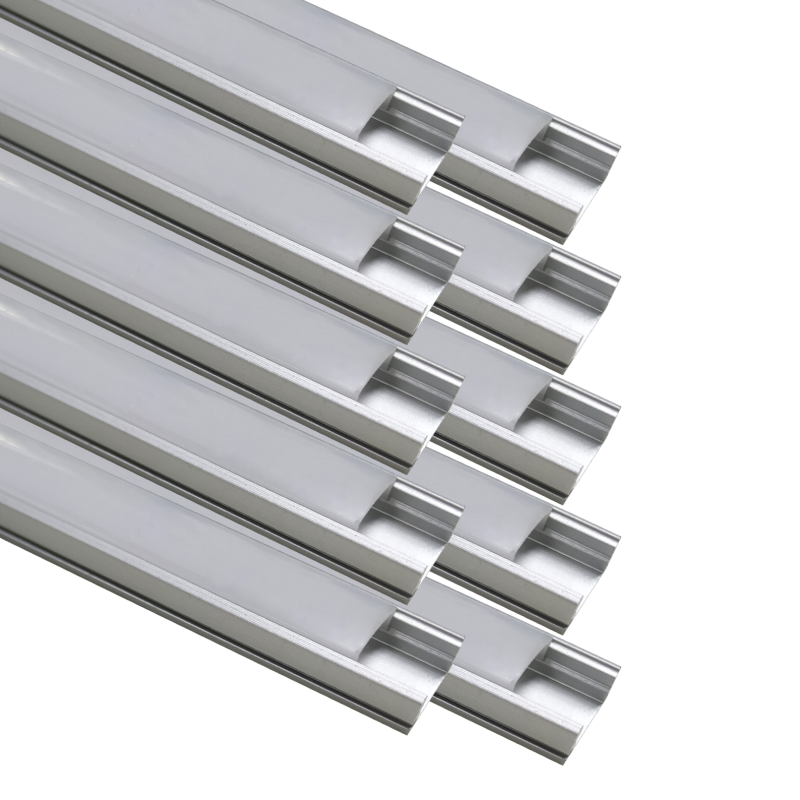 El perfil de aluminio cuenta con 1 metro, tapas en los extremos, clips de sujeción y una cobertura translucida que permite que la luz que emite la tira sea de gran calidad y eficiencia.