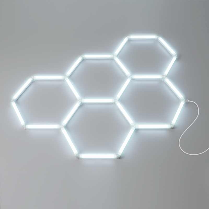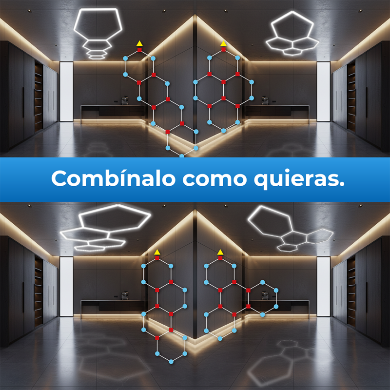 Ilumina tu garaje o zona de trabajo con la luz LED hexagonal LED ATOMANT, una solución de alta potencia y diseño modular que transforma cualquier espacio en un entorno profesional y bien iluminado.