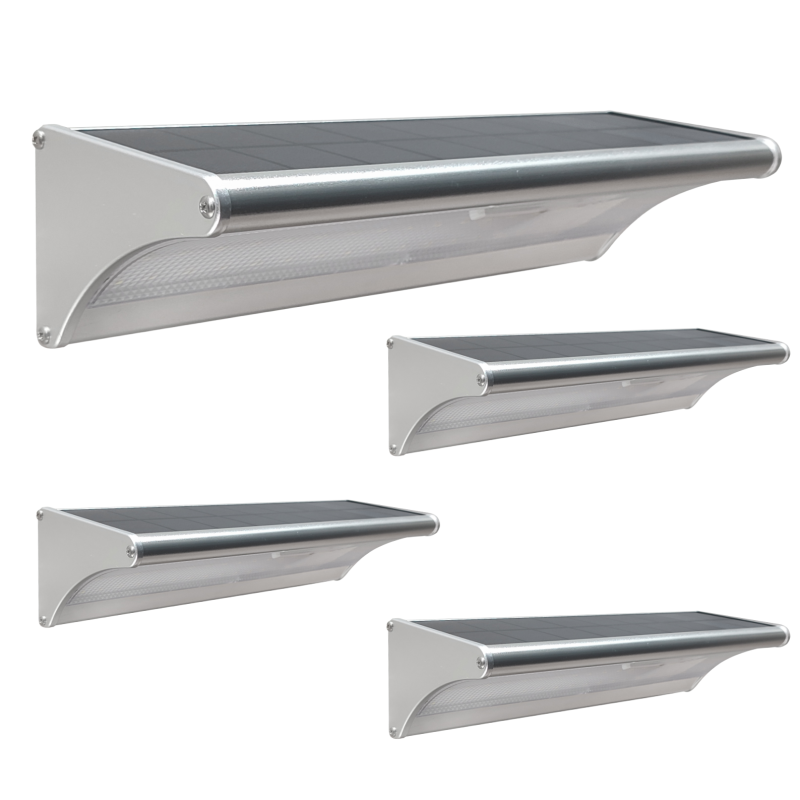Cette applique solaire LED avec détecteur de mouvement de 1100lm et 8,1W grâce à son processus de fabrication soigné et à la qualité de sa construction en aluminium poli offre des finitions parfaites et une protection contre la pénétration de la poussière et des projections d'eau, protection garantie par un indice IP65.