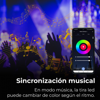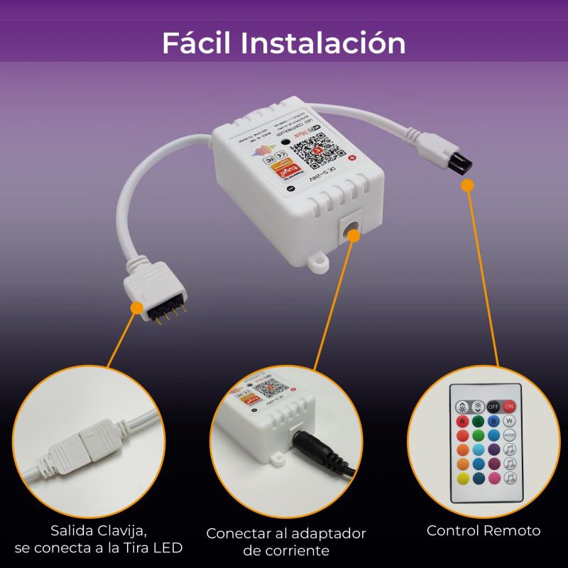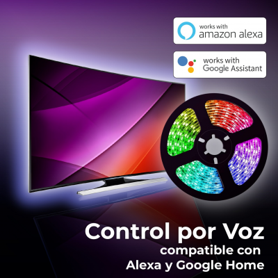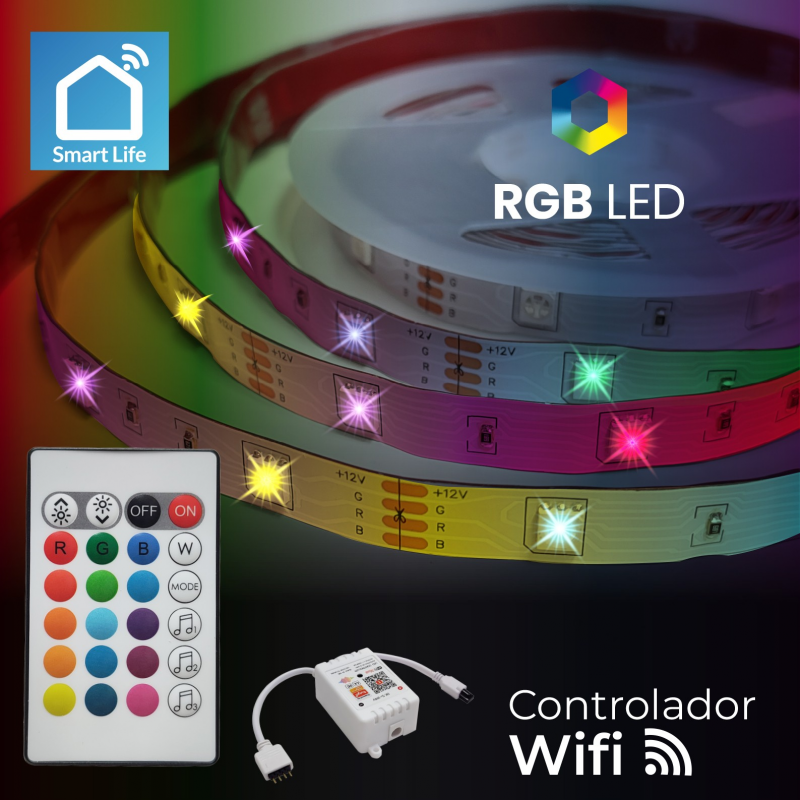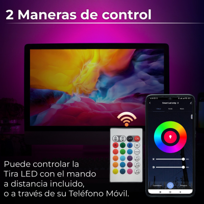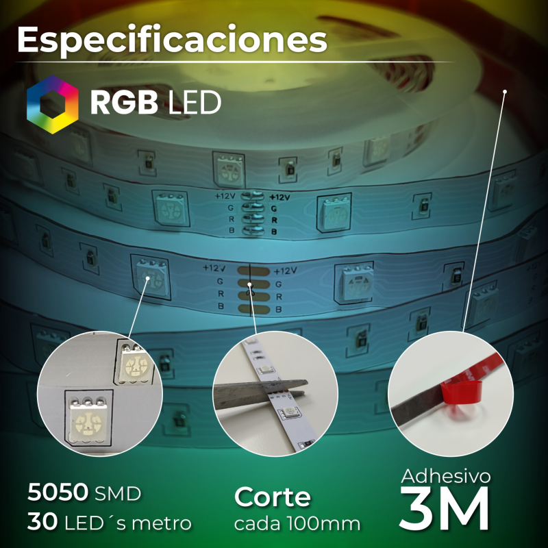 Bande LED 12V. RGB pour intérieur, kit Complet avec bande 5m + Contrôleur + Télécommande 44 touches avec piles incluses. Il peut être coupé tous les 10cm. Les fonctions peuvent être réglées via le mobile dans l’APP. Scènes, filtres et modes divers, synchronisation avec la musique, etc.