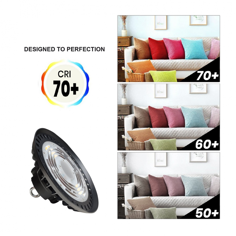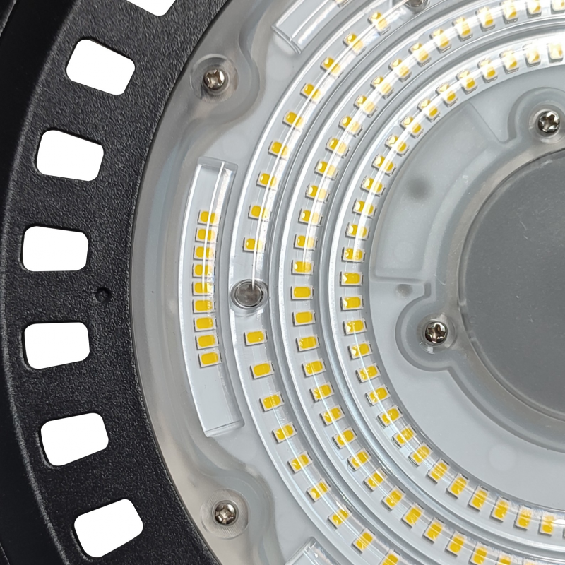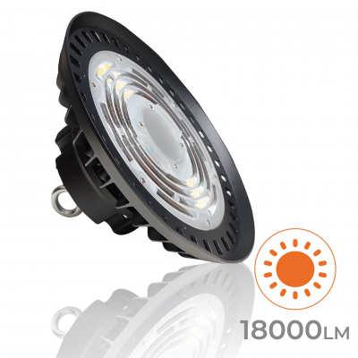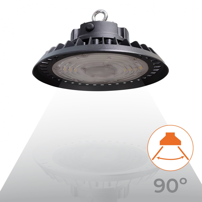 Cette lampe LED industrielle UFO 100W 18000lm permet d'obtenir un grand éclairage dans un espace réduit grâce à sa puce OSRAM, son angle d'ouverture de 90º et ses 18000 lumens. Son indice de rendu des couleurs élevé +70 IRC assure un rendu correct des couleurs. Elle s'allume instantanément sans scintillement.
