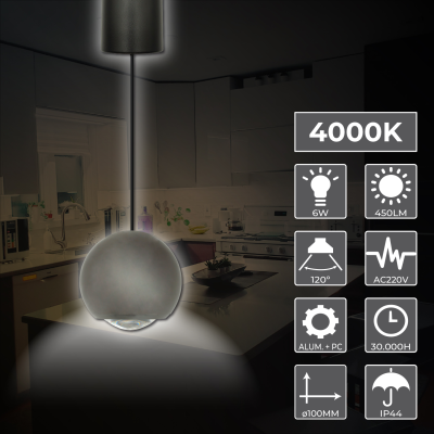 La Lampe Plafonnier Moderne Sphérique 6W combine design contemporain et efficacité. Elle se distingue par sa luminosité de 450 lumens et un angle de faisceau de 120º, offrant une lumière de haute qualité et attrayante avec un indice de rendu des couleurs supérieur à 90 CRI, gage de l'excellente qualité de lumière fournie.