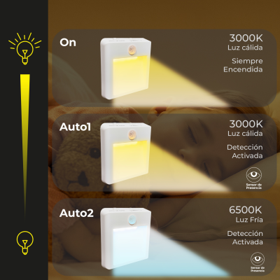 La veilleuse pour enfants avec capteur est la solution parfaite pour éclairer doucement n’importe quel espace de la maison pendant la nuit, en offrant sécurité, confort et efficacité énergétique. Avec une consommation de seulement 1W, cette lampe est très efficace et dispose d’un capteur automatique qui s’allume en détectant un mouvement et s’éteint automatiquement après 45 secondes s’il ne détecte aucune présence, contribuant ainsi aux économies d’énergie.