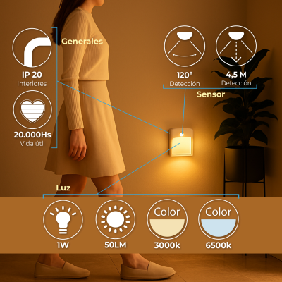 Cette lampe est idéale pour les enfants et les personnes âgées, car elle fournit un éclairage automatique qui aide à prévenir les trébuchements et les chutes, sans avoir besoin d’allumer des lumières vives ni d’interrompre le sommeil. Une option pratique, sûre et durable pour améliorer le confort nocturne à la maison.