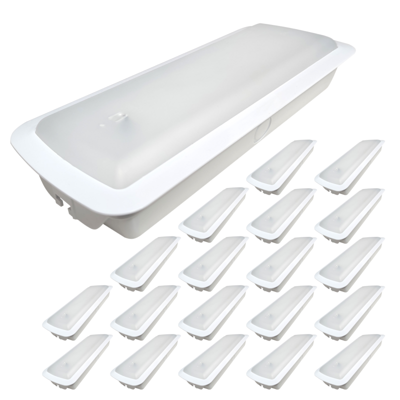 Surface: Elle sert également à remplacer les anciennes lampes de secours montées en saillie sur les murs ou plafonds. Si une nouvelle connexion doit être réalisée, il faut d’abord amener le câblage à l’endroit choisi, effectuer les connexions et retirer le cadre que la lampe intègre pour une installation encastrée. Ensuite, ouvrir la lampe pour la séparer du boîtier et pouvoir percer confortablement. Remonter et prête à fonctionner.