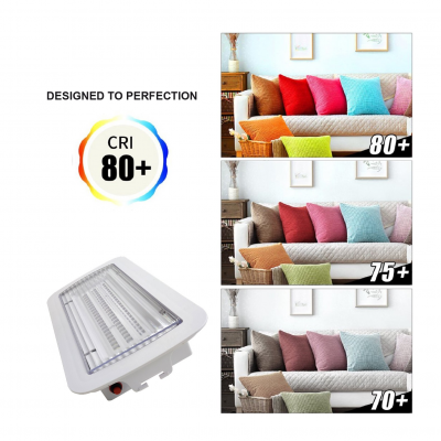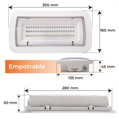 Degré de protection IP65. Il dispose d’un boîtier en ABS Ignifuga, d’une plaque, d’un cadre et d’un diffuseur qui évite de voir l’intérieur de la lampe.