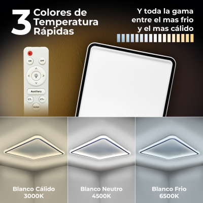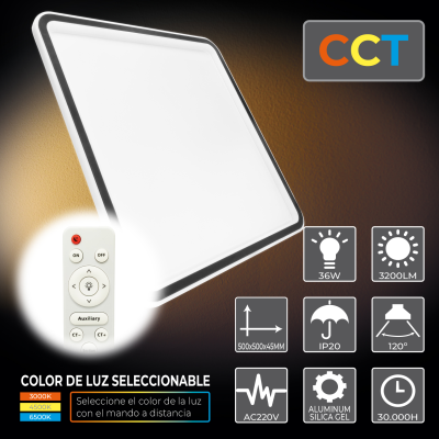 Le plafonnier LED carré CCT 36W 50x50 avec télécommande est une solution d'éclairage moderne et polyvalente, idéale pour tous les espaces de votre maison ou de votre bureau. Son design minimaliste et élégant, avec un cadre brillant, ajoute une touche de sophistication. Ce plafonnier est doté de la technologie CCT (Colour Temperature Control), qui vous permet de choisir entre différents tons de lumière (chaud, neutre ou froid) en fonction de vos besoins et de vos préférences. De plus, il comprend une télécommande pour un contrôle total de l'intensité et de la couleur de la lumière, apportant confort et personnalisation à votre environnement. Facile à installer et à faible consommation d'énergie, c'est le choix idéal pour ceux qui recherchent l'efficacité et le style dans un seul produit.