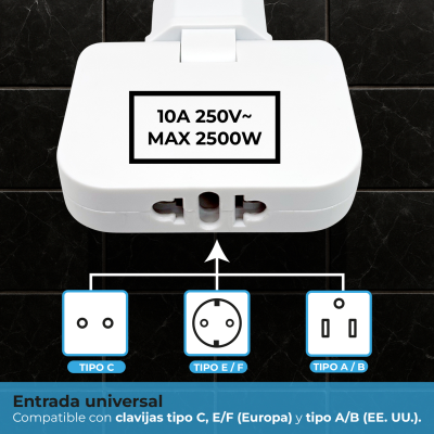 Ce qui distingue vraiment cette prise, c’est sa tête pliable à 180º. Ce design ingénieux vous permet d’ajuster la prise à n’importe quel angle pour s’adapter à vos besoins d’espace et de confort, tout en la rendant extrêmement compacte et facile à transporter. Lorsqu'elle n’est pas utilisée, il suffit de replier la tête pour qu’elle prenne un minimum de place dans votre sac, valise ou sac à dos.