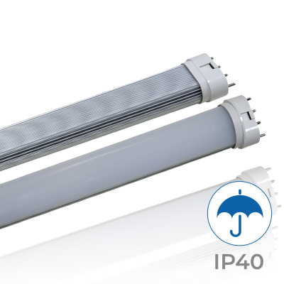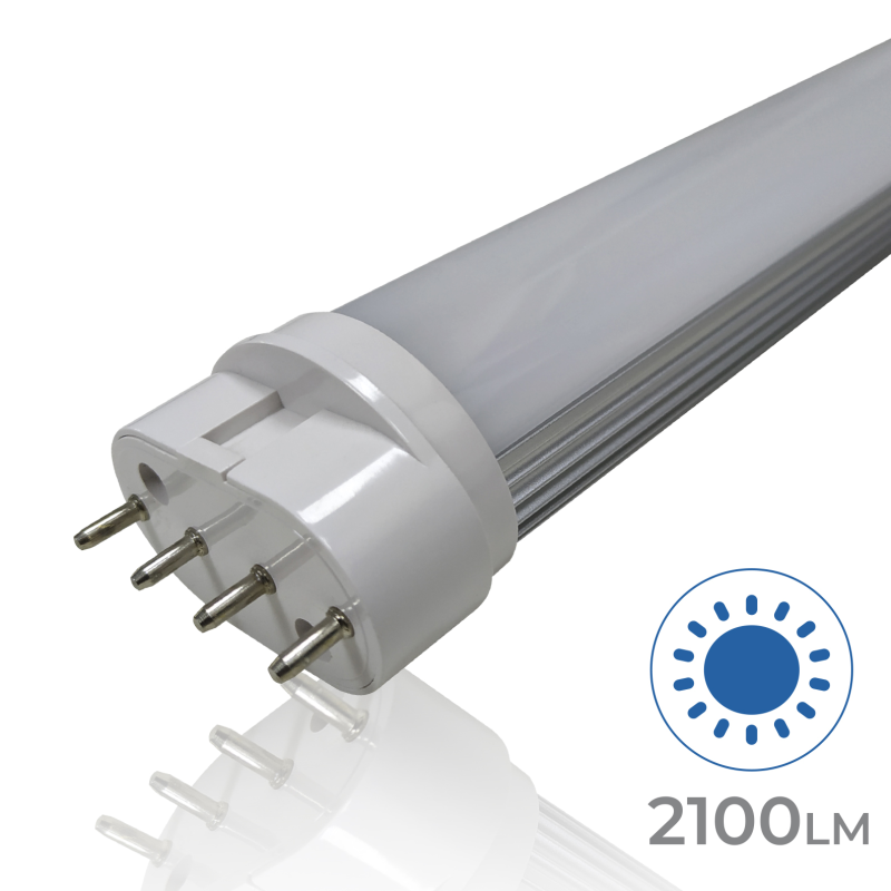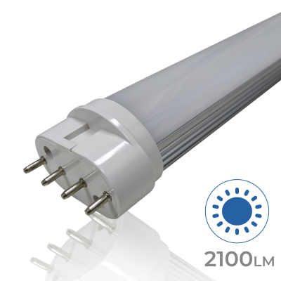 Le tube 2G11 de 21W est idéal pour remplacer les anciens tubes fluorescents. Parmi ses principales caractéristiques figurent son diffuseur opale,qui évite l’éblouissement et ne dérange pas la vue, ainsi qu’une bonne distribution de la lumière avec un angle d’ouverture de 160º et ses 2100 lumens. Son indice élevé de reproduction chromatique +80 CRIassure une reproduction correcte des couleurs.