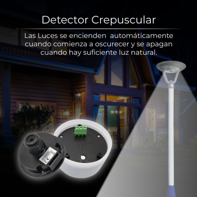 - Le luci collegate si accendono automaticamente quando viene raggiunta la soglia crepuscolare e si spengono all'alba