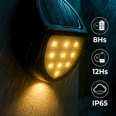 [Utilizzi dell’applique] Progettata per l’installazione a parete esterna, questa applique solare è ideale per illuminare passaggi, ingressi, terrazze, balconi o giardini. Rappresenta una soluzione pratica ed estetica per qualsiasi spazio in cui si desideri un’illuminazione decorativa o di orientamento notturno.