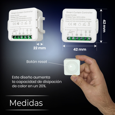 Questo Smart Switch WiFi con 1 pulsante è disponibile in bianco o nero. Ha misure standardizzate di 8,60 x 8,60 x 0,5 cm e pesa 90 grammi.