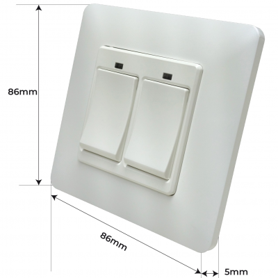 Questo Smart Switch WiFi con 2 pulsanti è disponibile in bianco o nero. Ha misure standardizzate di 8,60 x 8,60 x 0,5 cm e pesa 90 grammi.