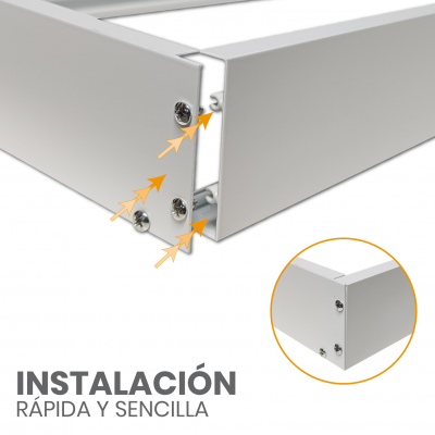 Il supporto è realizzato in alluminio di alta qualità, che garantisce la robustezza della struttura e favorisce la longevità del prodotto. Il suo design e la sua finitura laccata bianca gli permettono di adattarsi perfettamente al pannello LED, integrandosi perfettamente e formando un'unica unità.