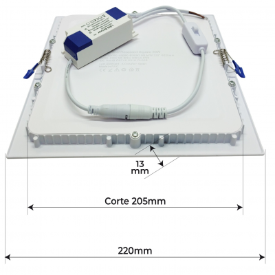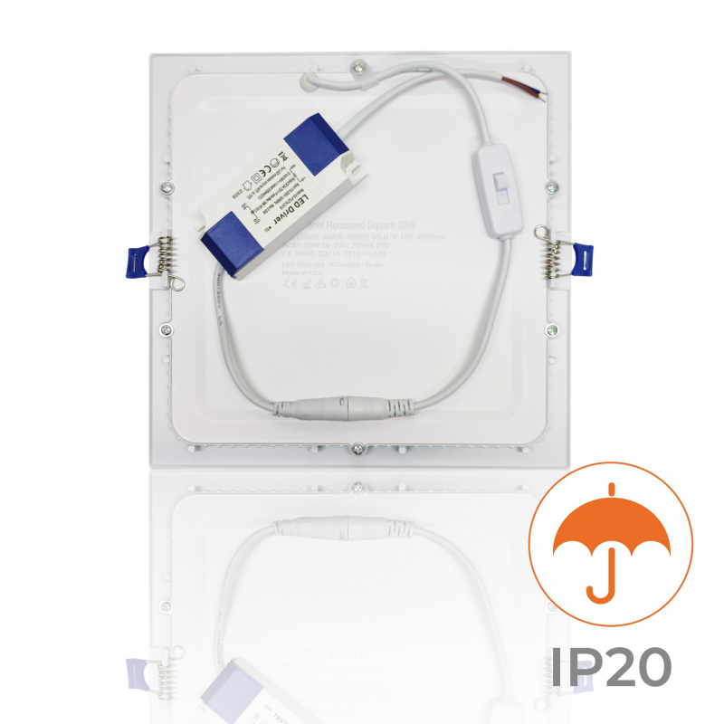 Con dimensioni standardizzate, un foro di taglio di 205x205x10 mm e dimensioni di 225x225 mm, è stato appositamente progettato per sostituire il downlight LED standard con 2 lampadine fluorescenti, normalmente da 26W. In questo modo si ottiene un risparmio energetico di oltre il 60% rispetto a queste lampadine. Maggiore efficienza a un prezzo inferiore.