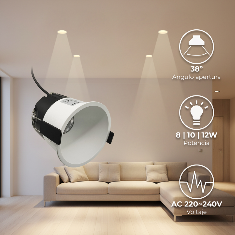 Questo downlight funziona direttamente a 220V, eliminando la necessità di trasformatori aggiuntivi e semplificando l’installazione.