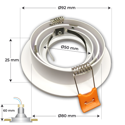 [Dimensões] Ø50x56mm, casquilho GU10. 8W, 800 lúmens e ângulo de feixe de 120º.