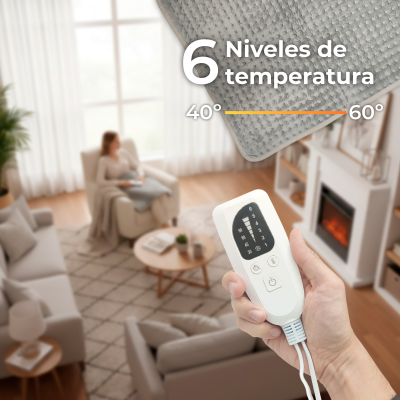 A sua versatilidade reflete-se nos 6 níveis de ajuste de temperatura, que variam de 40°C no nível mais baixo até 60°C no mais alto, adaptando-se às suas necessidades pessoais. Além disso, conta com uma função de temporizador e desligamento automático em intervalos de 30, 45, 60 e 90 minutos, oferecendo tranquilidade e segurança durante o uso.