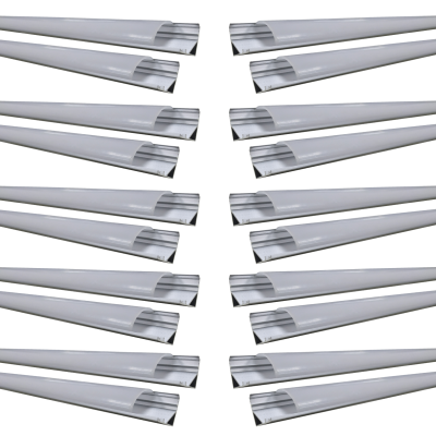 O perfil de alumínio é fornecido com 1 metro, tampas de extremidade, clipes de fixação e uma cobertura translúcida que permite que a luz emitida pela faixa seja de elevada qualidade e eficiência.
